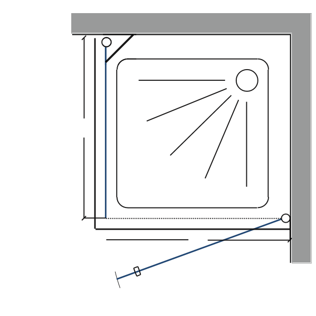 מקלחון פינתי דופן קבועה + דלת פתיחה החוצה בלבד פרופיל זהב מט